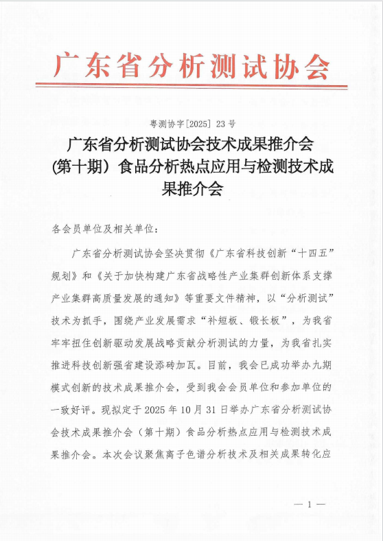广东省分析测试协会技术成果推介会(第十期)食品分析热点应用与检测技术成果推介会