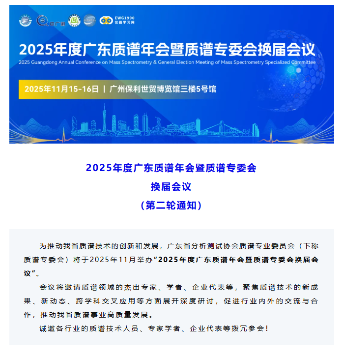 【第二轮通知】2025年度广东质谱年会暨质谱专委会换届会议