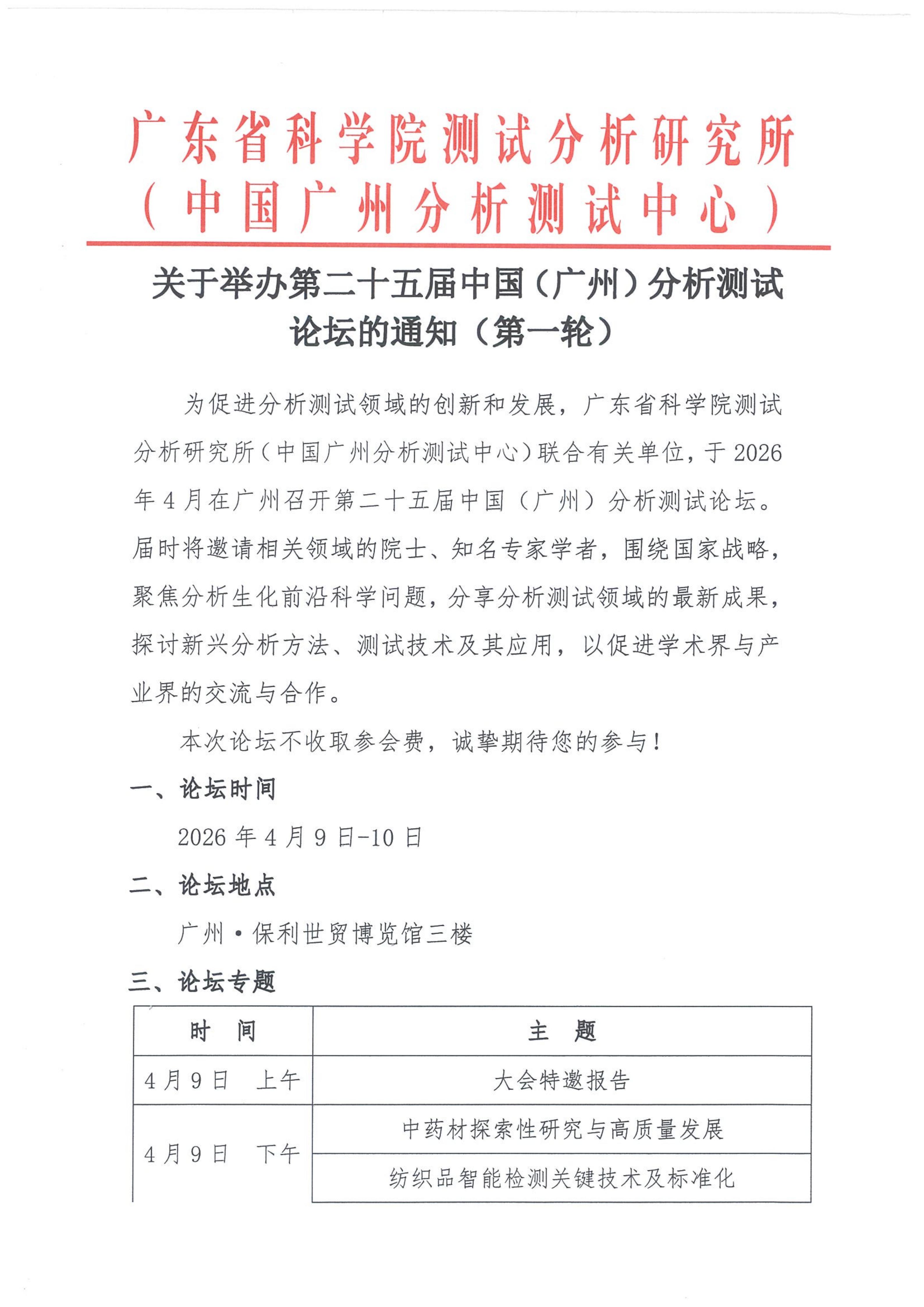 关于举办第二十五届中国(广州)分析测试论坛的通知(第一轮)