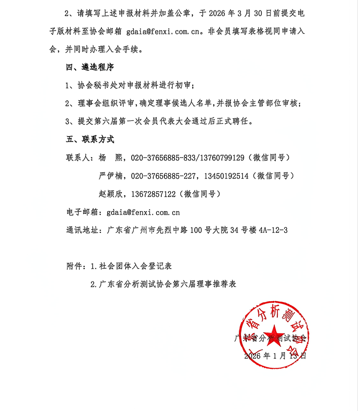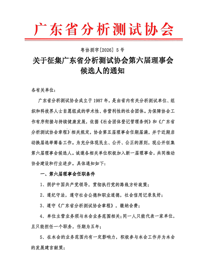 关于征集广东省分析测试协会第六届理事会候选人的通知